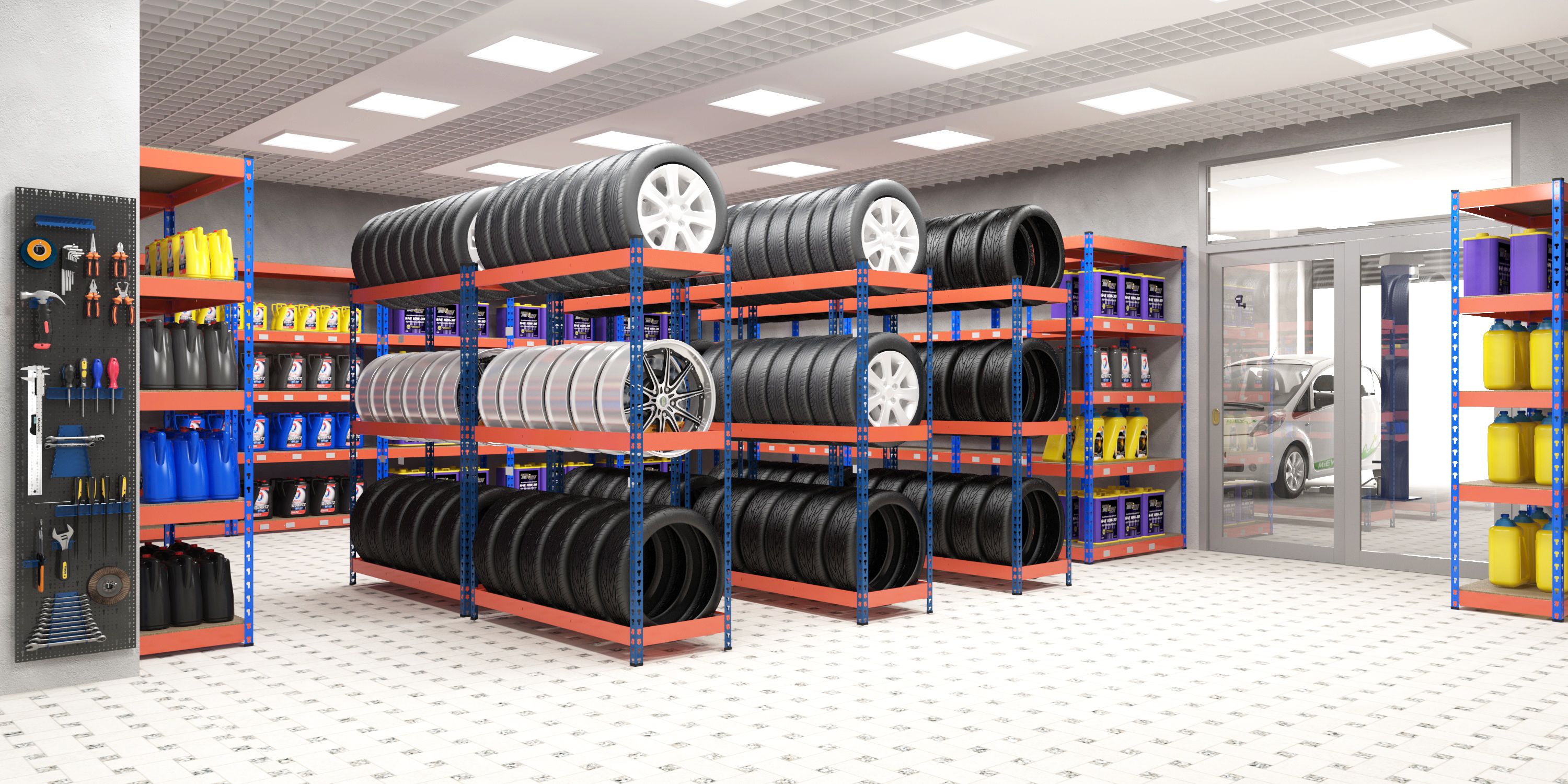 - Міцність. Вироби здатні витримувати різний вантаж з вагою до 400 кг. Тому на стелажах можна зберігати навіть обладнання, автомобільні шини або важкі запчастини.