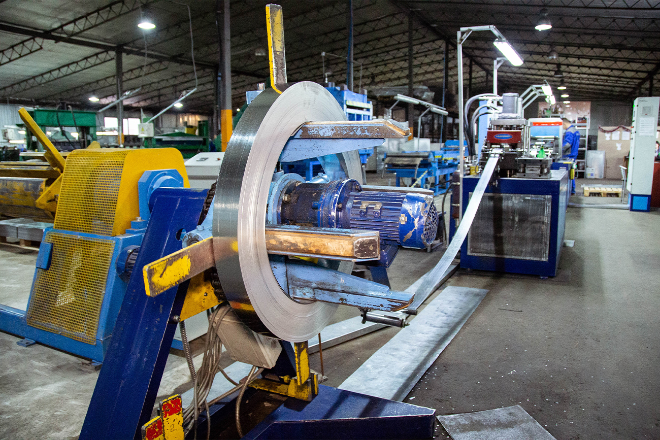 Замовлення передано на виробництво і тепер розпочинається етап підготовки металу. Відбувається розкрій сталевого листового прокату, виготовляються металеві деталі для узгодженої конструкції. Тип металу залежить від заданого навантаження на готовий стелаж. Один з найпопулярніших – вуглецева сталь, він найпоширеніший. Далі фахівці перевіряють марку сталі, стан виміру листів за затвердженим технічним завданням. Після чого використовуючи гільйотину сталь, розрізається на необхідні заготовки.
