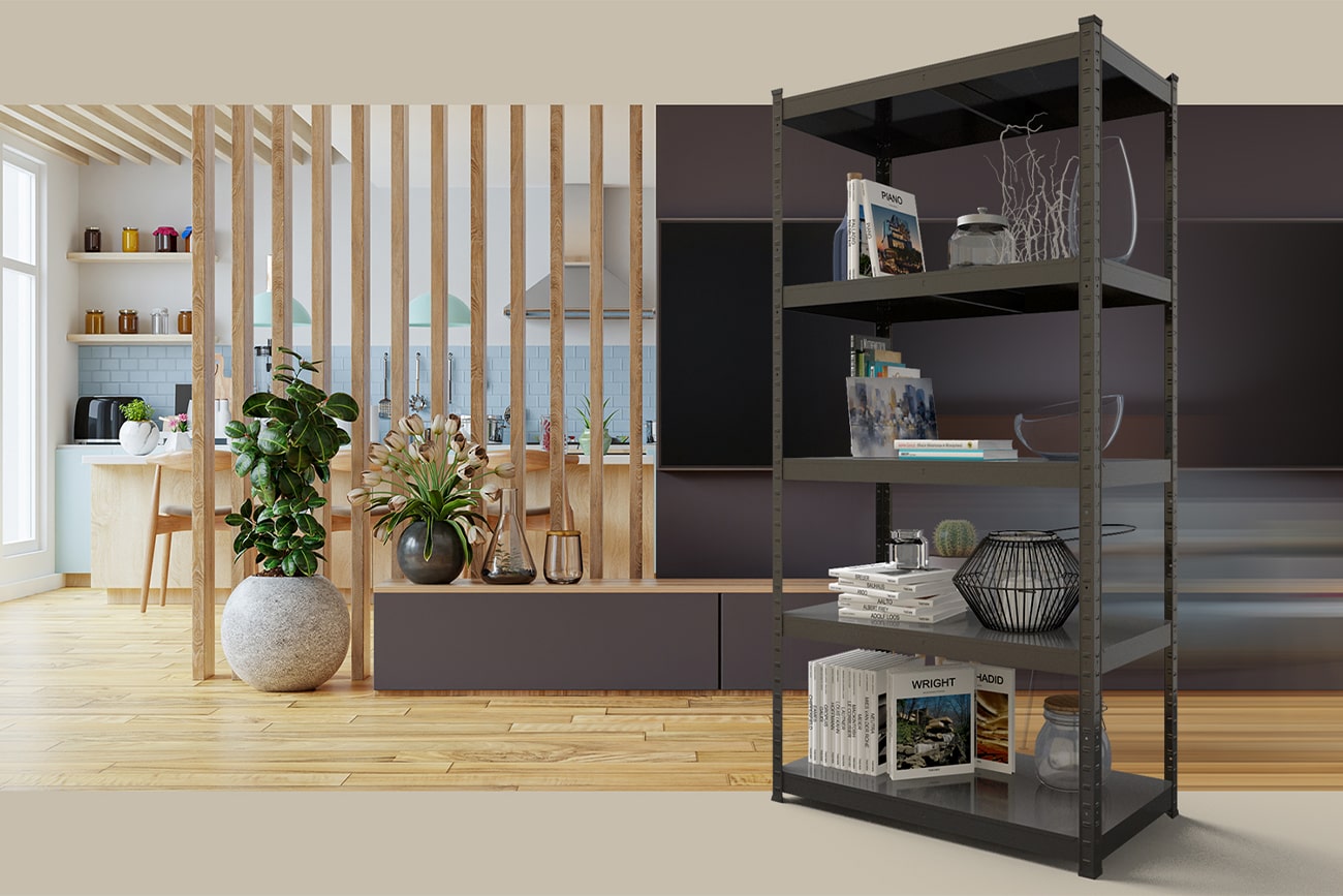 Особливістю в дизайні сучасних інтер'єрів є обов'язкова функціональність та практичність. Значна частина яких залежить від розташування меблів та предметів у кімнаті. Полиця стелаж – це практичні та компактні меблі в кілька ярусів. Конструкція сприяє розподілу дрібних або великих предметів залежно від інтер'єру та типу стелажу.